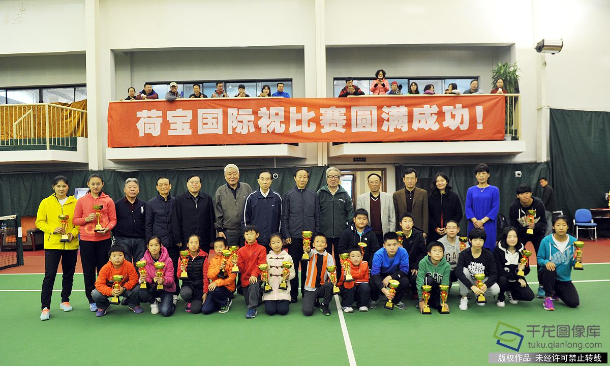 10月30日,第二十届“将军杯、木兰杯”青少年网球比赛在先农坛体育场网球馆落下帷幕。来自北京的90多名青少年网球选手参加了甲、乙两个组别的8个项目的比赛。图为获奖选手和颁奖嘉宾合影。千龙网记者 戚连民摄