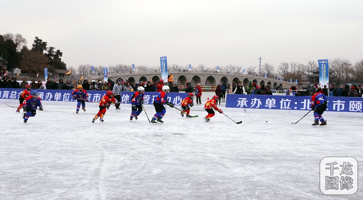 1月21日,第三届大众冰雪北京公开赛启动仪式在北京颐和园昆明湖举办,本届赛事将持续两个月,预计累计吸引上万名健身爱好者参与。图为启动仪式上的冰球表演赛。千龙网记者 戚连民摄