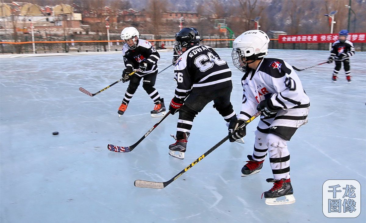 1月22日,房山区2018年迎冬奥市民快乐冰雪季活动启动,活动自2018年1月开始,到3月结束。图为冰雪季活动启动仪式上的冰球表演。千龙网发 主办方供图