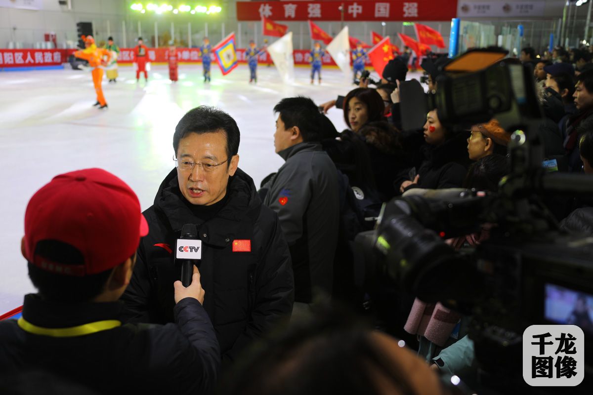 2月25日,平昌冬奥会闭幕式举行,北京市市长陈吉宁从国际奥委会主席巴赫手中郑重接过冬奥会会旗挥舞的瞬间,冬奥会正式进入北京时间,全世界再一次将目光聚焦到北京,聚焦到中国。图为北京市体育局局长孙学才接受采访。千龙网发 胡宗洋摄