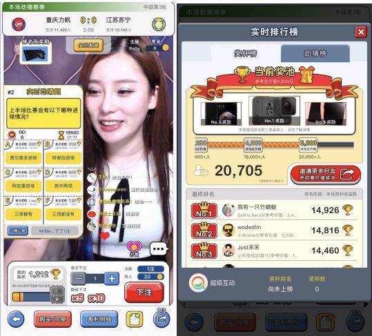 「超级互动」以各类体育赛事为主题,结合真人视频直播,还为用户提供猜题的互动服务;球迷们还可以通过参与互动可以赢得各类奖励。这样一种结合实时赛况、预测答题,结合真人直播的互动形态,不仅产生球迷聊球、猜题互动等各类玩法,更是通过营造热烈的看球氛围,成为在家看球的好搭档!
