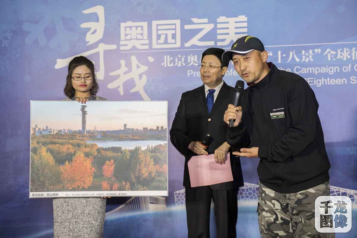 3月28日,北京奥林匹克公园开始面向全球公开征集“奥园十八景”,希望通过征集评选“奥园十八景”活动,助力2022年冬季奥运会的筹办。图为001号投稿人张宇介绍自己心中的奥园十八景。千龙网发 夏波光摄