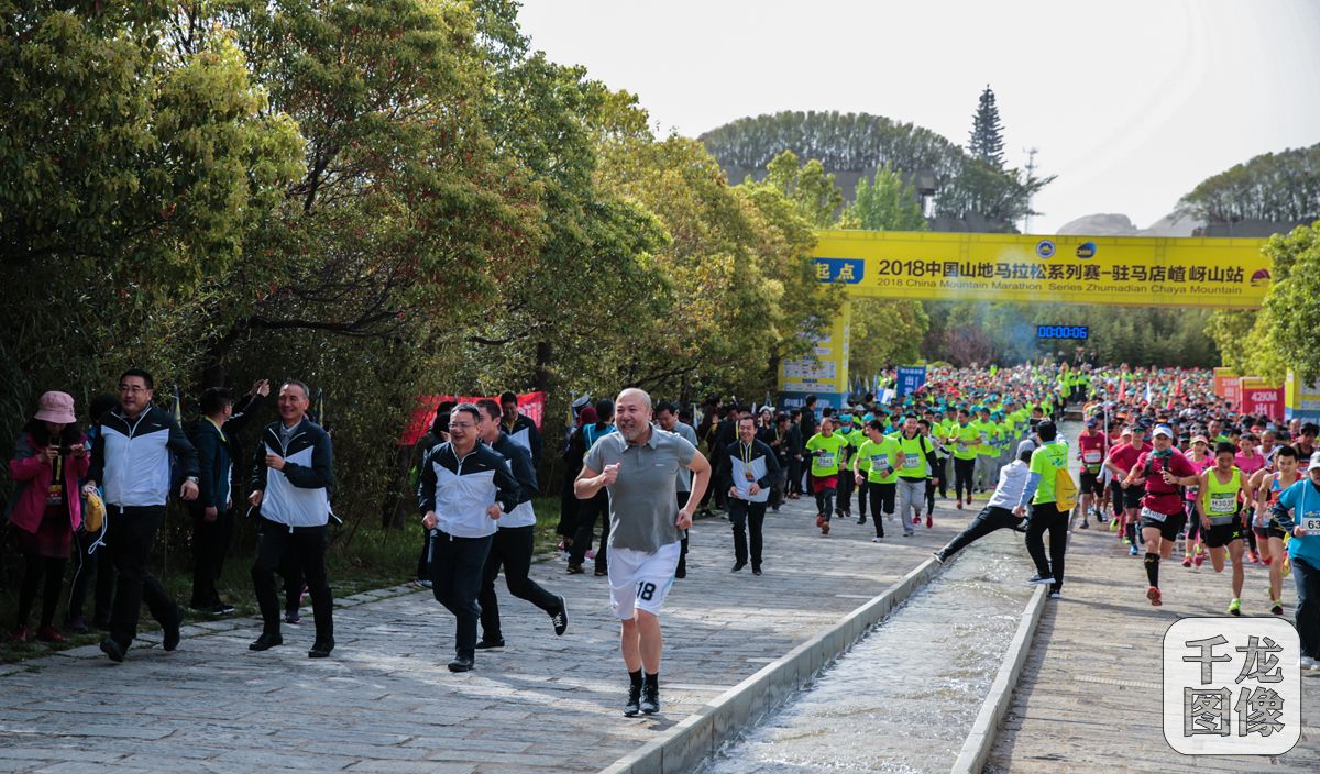 4月15日,2018中国山地马拉松系列赛在河南省驻马店嵖岈山风景区拉开大幕,嵖岈山首站比赛共吸引4000余名跑步爱好者参赛报名,比赛共设置了山地马拉松42公里个人赛、山地马拉松21公里个人赛和4.2公里群众健身赛三个项目六个组别的比赛。图为国家体育总局登山运动管理中心副主任、中国登山协会副主席王勇峰领跑。千龙网发 主办方供图。