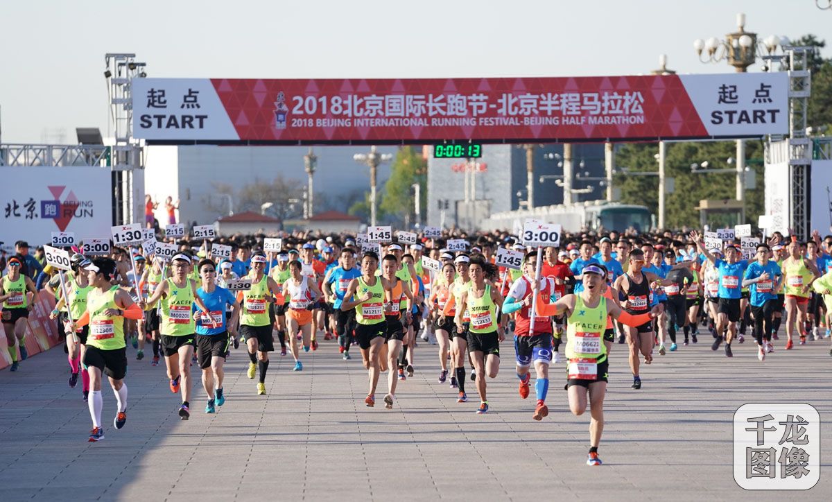 4月15日,2018北京国际长跑节-北京半程马拉松在天安门广场起跑。图为来自32个国家和地区的20000余名跑者参与了这次比赛。千龙网记者 戚连民摄