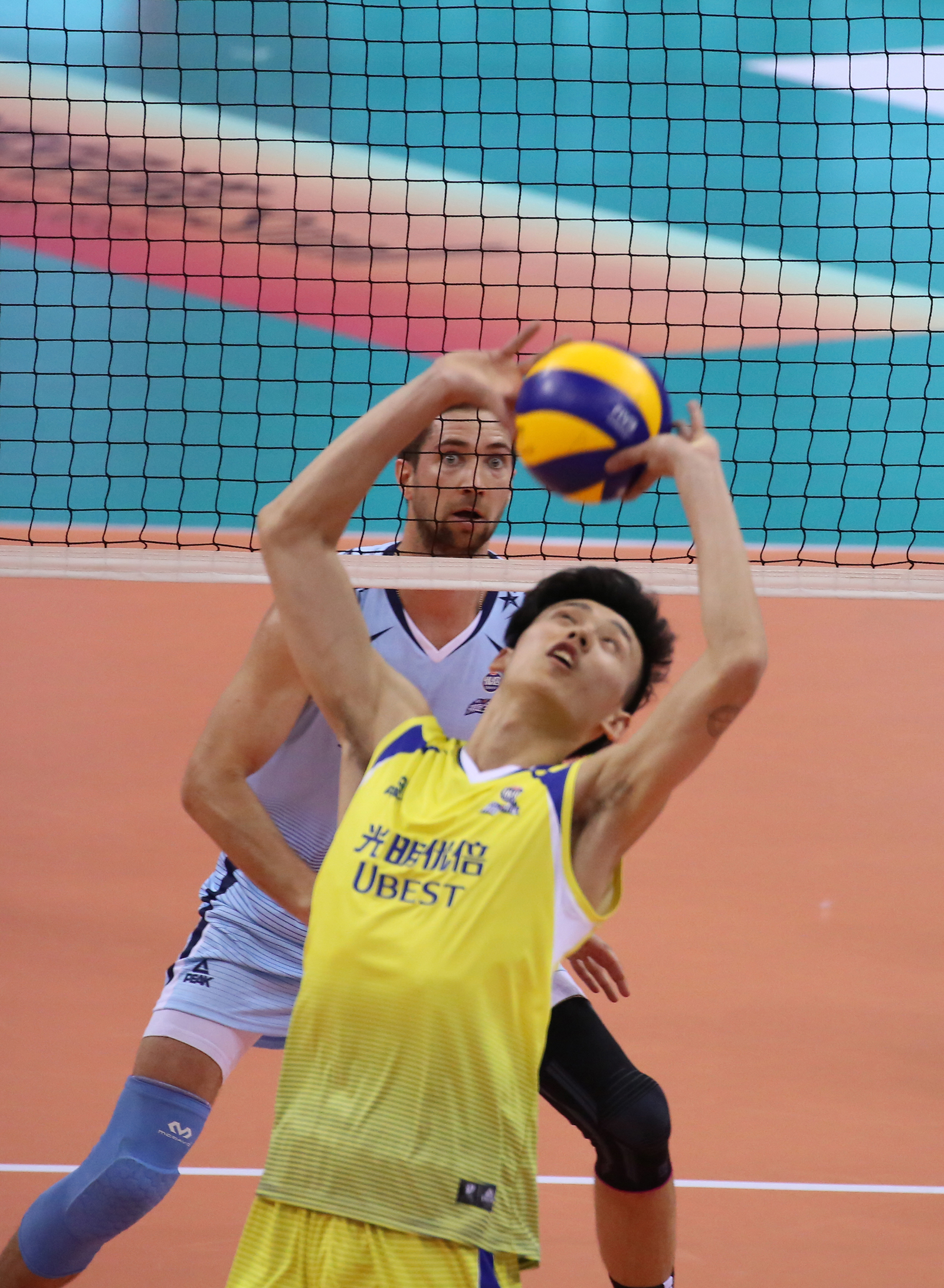 首局北方队双人拦网、发球直得6-4占先,南方队凭借多次拦网10-9还以颜色,两队比分交错上升,南方队张晨四号位漂亮小斜线,北方队季道帅轻抹18-16领先。此后南方队陆续换上俞元泰、吴浩加强保障。北方队换上梁春龙,双方战成21平结束第一局比赛。