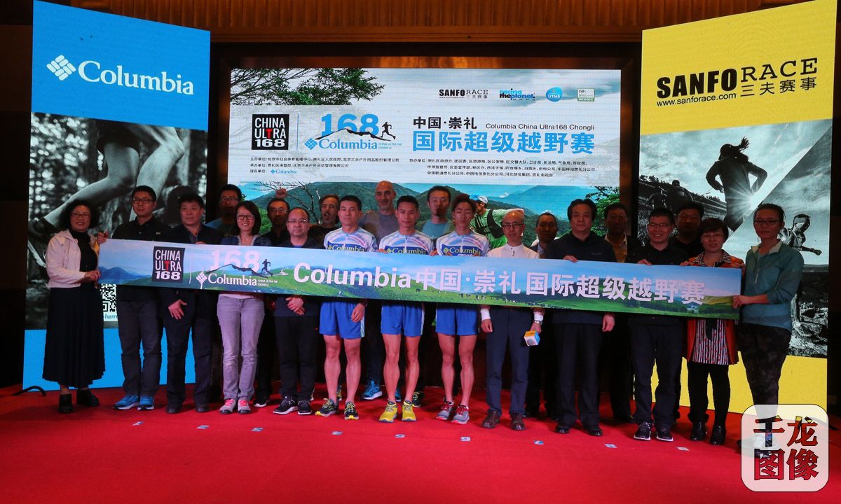 4月23日,Columbia崇礼168国际超级越野赛组委会在京召开新闻发布会,公布赛事组别设置,赛道安排并向媒体通报赛事的筹办进展。图为领导和嘉宾合影。千龙网记者 戚连民摄