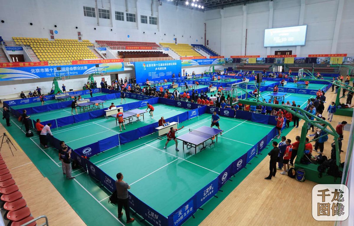 5月5日,北京市第十五届运动会群众乒乓球比赛5月5日在平谷体育中心举行,比赛为北京市第十五届运动会群众比赛拉开帷幕,也为第十五届市运会预热。图为比赛现场。千龙网发 主办方供图