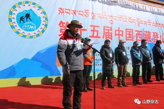 2017年11月5日,尼玛次仁在第十五届中国西藏登山大会开幕式上讲话