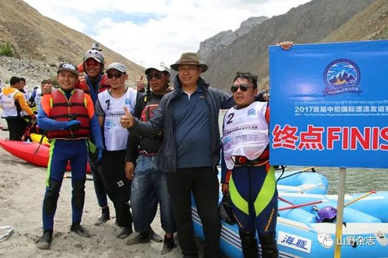 尼玛次仁(右二)和参加2017首届中尼国际漂流友谊赛的西藏选手