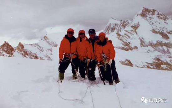 尼玛次仁(右二)带领西藏登山学校的学生进行雪山攀登训练