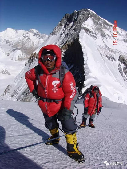尼玛次仁在奥运火炬接力珠峰传递活动中