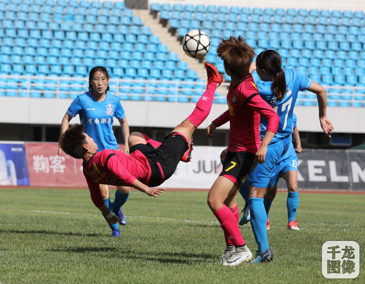 5月12日,2018赛季女超联赛第3轮北京北控置业队客场挑战河南徽商女足。经过90分钟激战,最终,北京北控置业队2:2河南徽商女足。图为双方比赛精彩瞬间。千龙网发 俱乐部供图