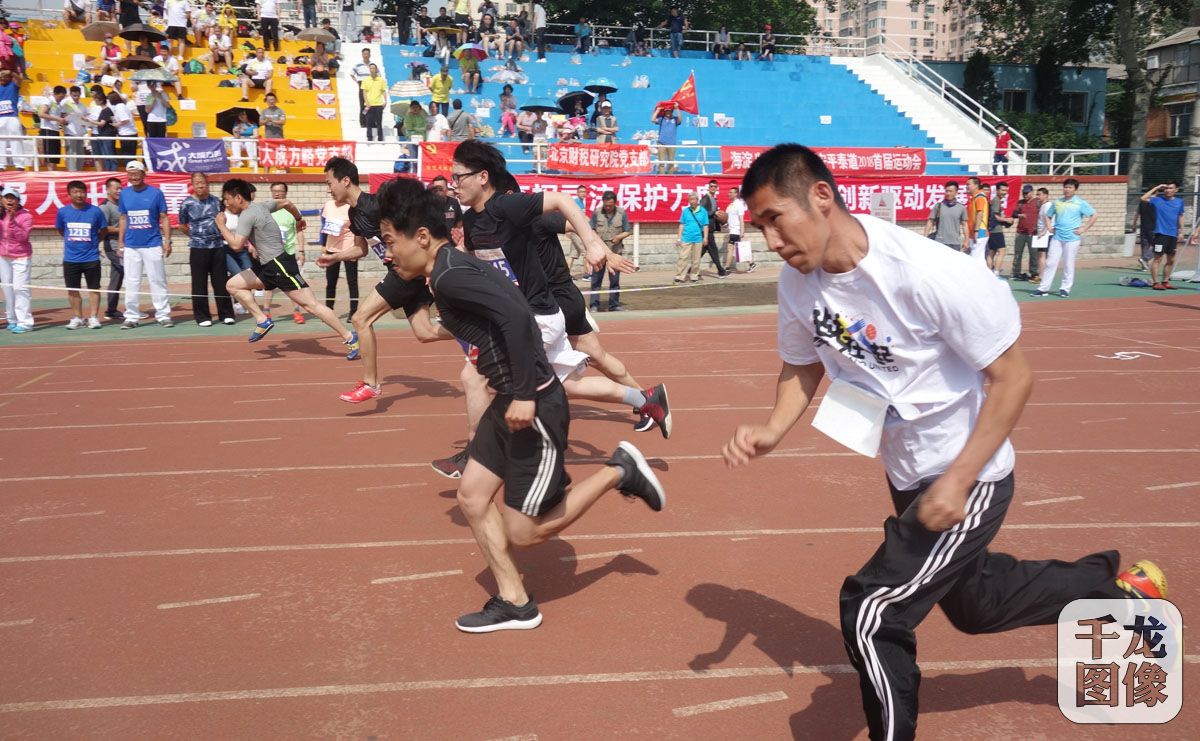 5月19日,以“团结融合 创新发展 共建共享 铸就辉煌”为主题的海淀区八里庄街道“玲珑杯”首届地区运动会在首都师范大学体育场举行。图为100米比赛现场。千龙网记者 戚连民摄