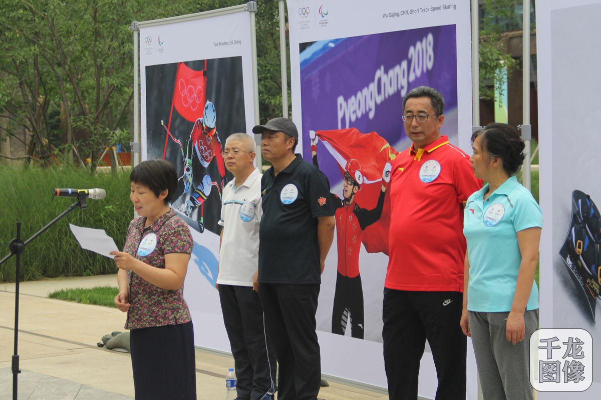 6月22日下午,北京冬奥组委机关工会和首钢集团有限公司工会在首钢园区内举行纪念国际奥林匹克日健步走活动。图为北京冬奥组委机关党委专职副书记、机关工会主席王风致辞。千龙网记者 黄业摄