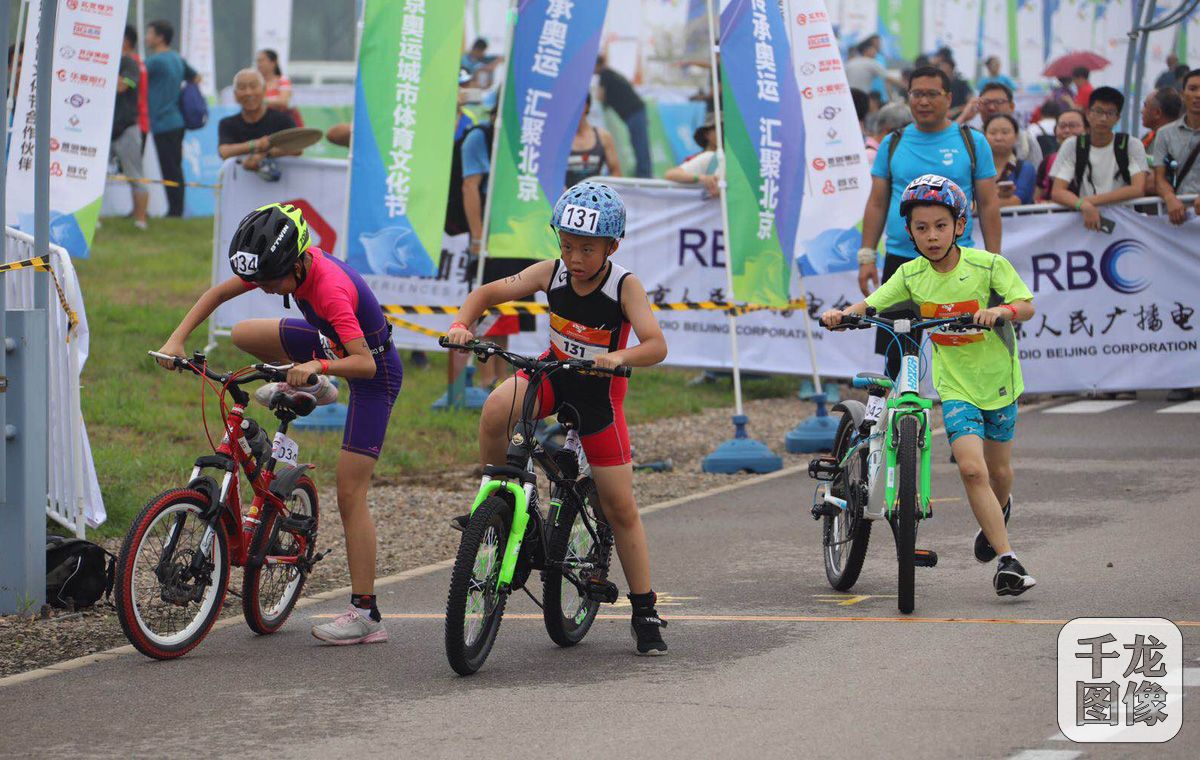 8月11日,2018年北京奥运城市体育文化节—成长勋章小铁人三项赛在顺义奥林匹克水上中心举办。图为比赛现场。千龙网发 主办方供图