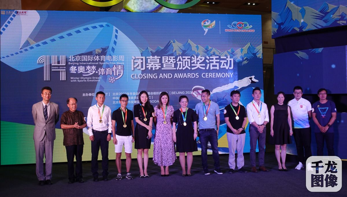 8月13日,第十四届北京国际体育电影周闭幕式及颁奖典礼在鸟巢文化中心举行,50部跑步题材影视作品荣获传媒荣誉奖,21部体育影片荣获米兰国际体育电影电视节全球总决赛北京站优秀作品奖,并将代表中国参加被誉为“全球体育电影奥斯卡”的米兰国际体育电影电视节总决赛。图为评委为获奖作品代表颁奖。千龙网记者 戚连民摄