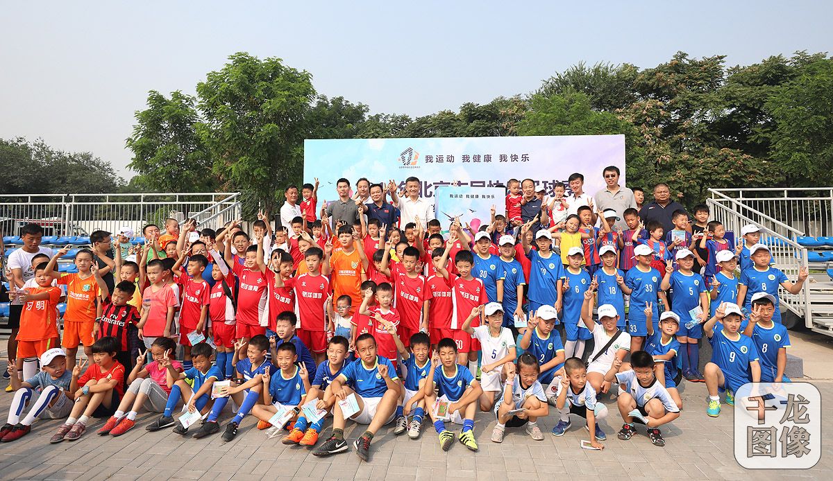 8月26日,2018年北京市民快乐足球季暨北京市市级社会足球活动启动仪式在国家奥林匹克体育中心举行。图为全体小球员和嘉宾合影。千龙网发 北京市足球运动协会供图