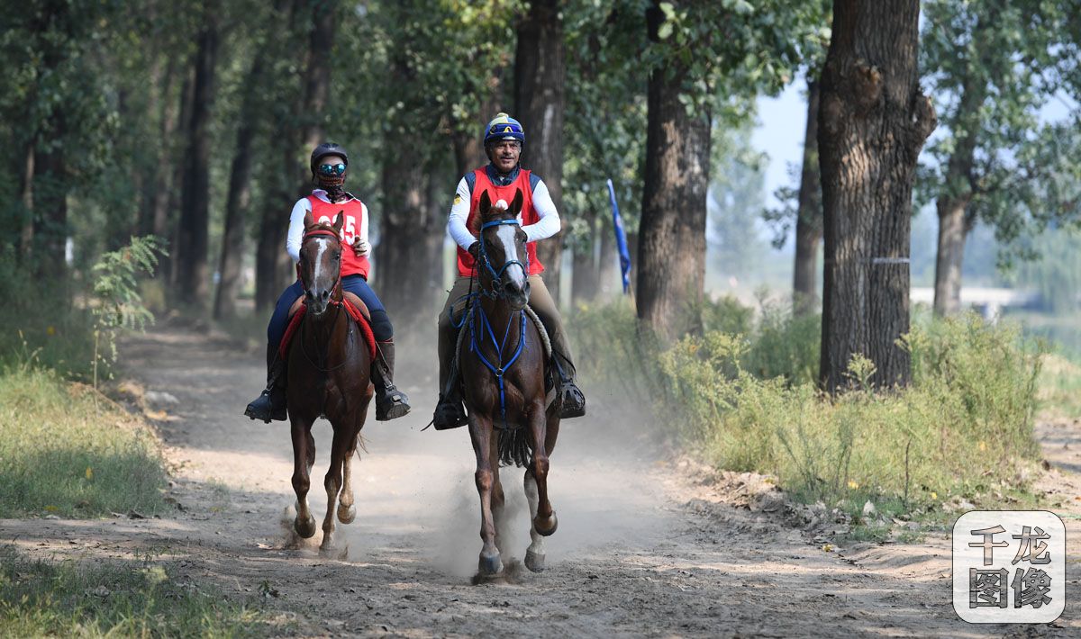 9月27日-28日,2018中国砀山国际马术耐力赛在砀山举行,有来自国内外150多组人马组合以及近万名马术爱好者参加。图为参赛选手在比赛中。千龙网发 主办方共图