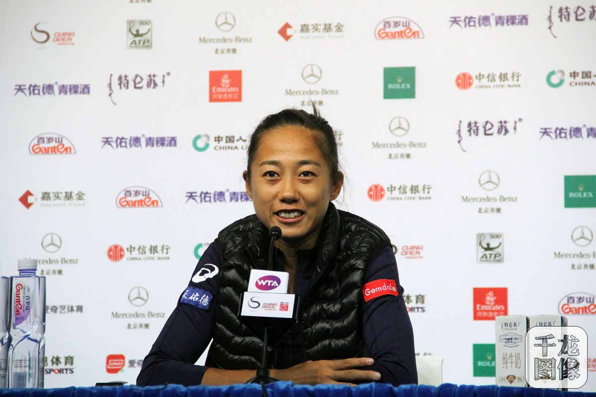 10月3日,2018年中国网球公开赛进入到正赛第五日争夺。在女单第二轮比赛中,张帅以6-1/6-2横扫匈牙利选手巴博斯,晋级16强。图为张帅在赛后新闻发布会上回答记者提问。千龙网记者 黄业摄