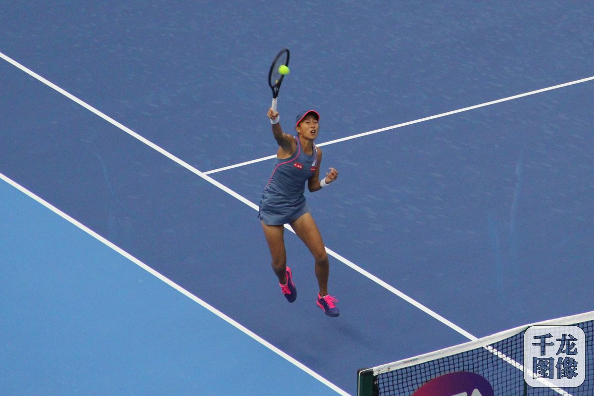 10月4日,WTA皇冠赛中国网球公开赛继续进行,张帅以6-1/2-6/6-0战胜3号种子科贝尔,继2016年后再度晋级八强。图为张帅在比赛中。千龙网记者 黄业摄