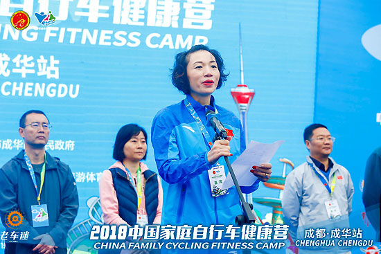 成都市体育局副局长高伟,成华区人民政府副区长万琳,成都市体育局竞赛处处长杨慎微,四川省自行车运动协会副主席龚真祥,四川省体育产学研促进会秘书长柳伟,成都体育产业商会秘书长王岚,成都市成华区文旅体局局长杨楠,杨桂林家庭自行车健康营品牌第二代传人杨艳丽等领导和嘉宾出席了开幕式。开幕式由成华区文旅体局局长杨楠局长主持,成都市体育局副局长高伟宣布2018中国家庭自行车健康营(成都·成华站)开幕。