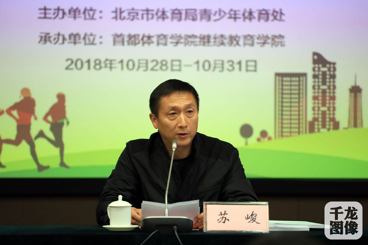 10月29日,2018年北京市青少年体育俱乐部管理人员培训班10月29日在京开班。本期培训班由北京市体育局青少年体育处主办,首都体育学院继续教育学院承办。来自全市16个区的233名管理干部参加了为期四天的培训。图为北京市体育局青少处处长苏峻。千龙网发 北京市体育局青少处供图
