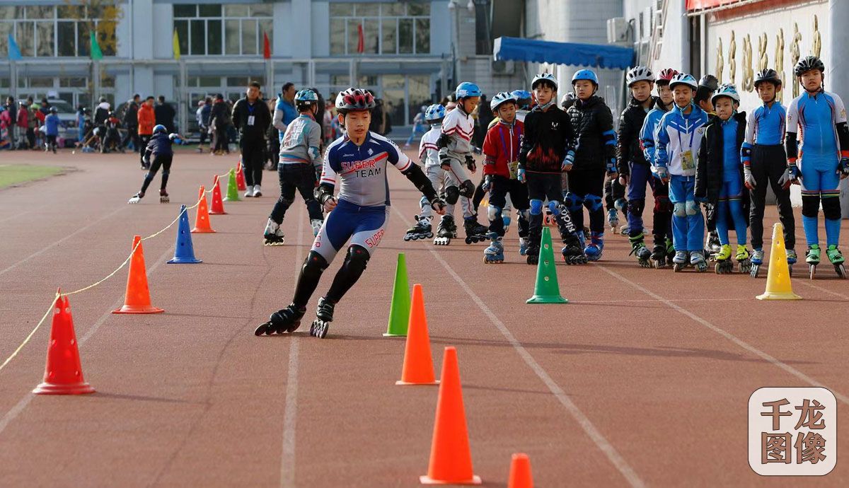 11月11日,阳光体育2018年“和九飞跃杯”中小学生轮滑比赛在地坛体育中心举行,东城区15所中小学、200多名中小学生参加。图为活动现场。千龙网发 主办方供图