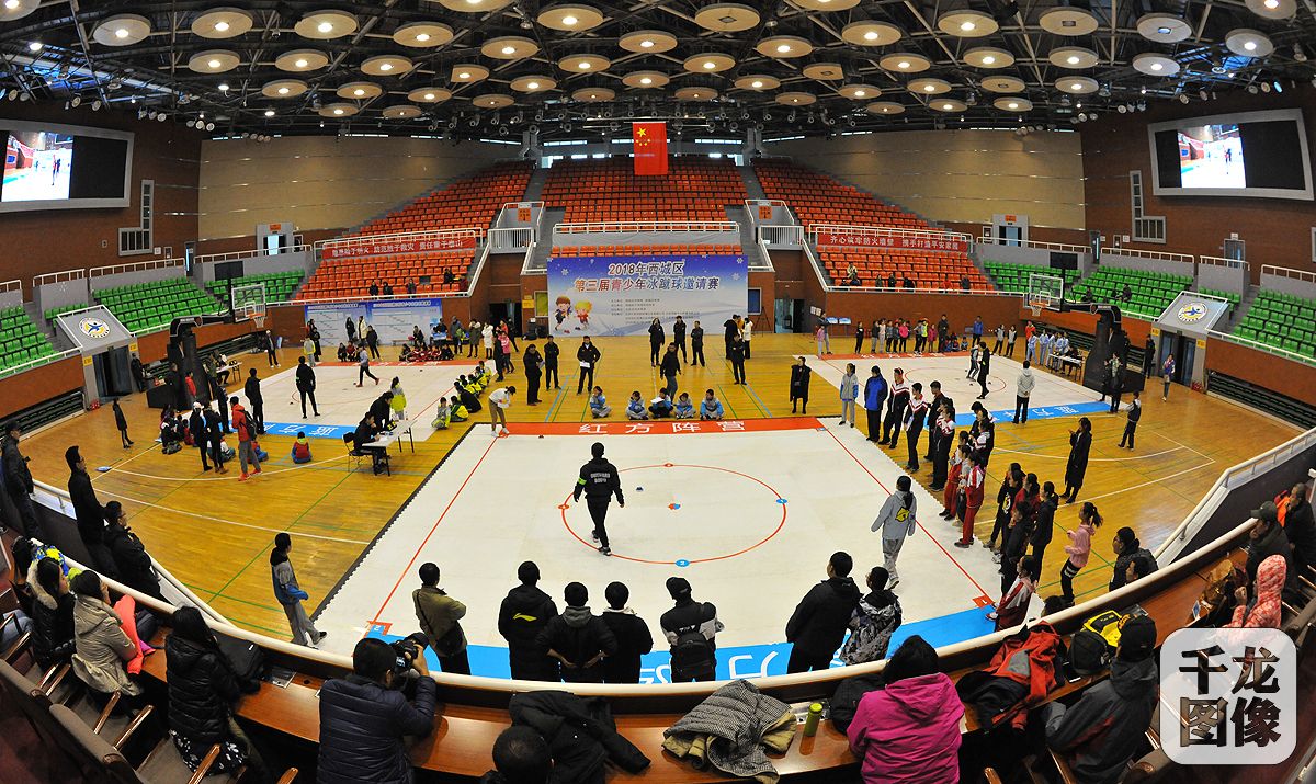 11月24日,2018年西城区第三届青少年冰蹴球邀请赛在北京月坛体育馆举行。本次参加比赛的共有来自西城、朝阳、大兴、昌平等区的13所学校共200余名学生参赛。图为比赛现场。千龙网发 崇惠友摄