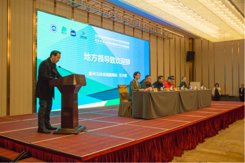 12月29日,2018中国山地马拉松系列赛、2018中国天空跑系列赛年度交流会暨中国山地户外产业发展论坛在浙江省江山市举行。来自2018年中国山地马拉松系列赛、天空跑系列赛承办地以及拟举办2019年中国山地马拉松系列赛的各地政府、体育局、旅游局负责人和户外运动专家、新闻媒体代表近百人参加会议。