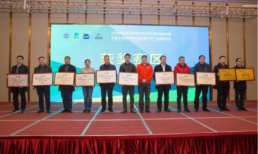 嵖岈山站、重庆黔江站、湖北利川站、山东五莲站、信阳鸡公山站、广州从化站、广西马山站、福建漳州港站、武汉新洲站被授予2018中国山地马拉松赛区城市优秀组织奖,金沙县、江山市被授予2018中国天空跑赛区城市最美天空奖。