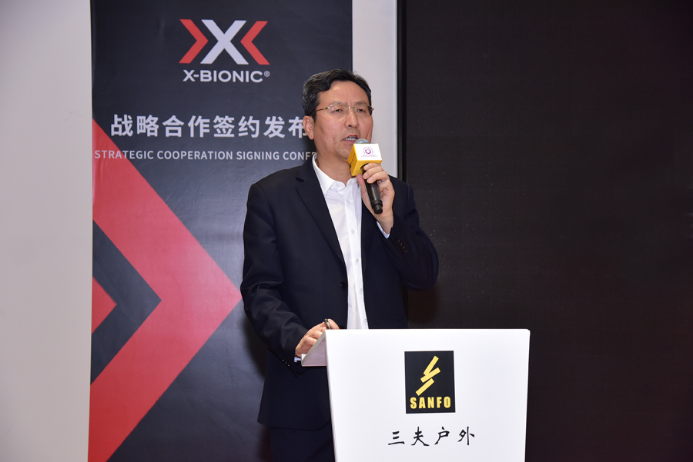 当日,国家体育总局体育器材装备中心副主任王平参与签约发布会并致辞。王平副主任认为三夫户外与X-BIONIC品牌的战略合作恰逢其时。“2018年中国GDP突破90万亿,人均接近1万美元,全民运动健康既是社会消费大趋势也是国家重点发展战略。中国成功申办2022年冬奥会,可以说时代带来机遇。随着体育消费和体育产业投资的大幅增加,2018年国内户外运动品牌在销售及盈利方面都有很好的表现,中国正由体育制造大国向体育制造强国迈进。三夫户外是国家体育产业示范单位,也是户外运动产业中为数不多的上市公司,希望三夫户外与X-BIONIC合作以后,能够为备战冬奥的运动员提供更优质的训练、比赛服装及装备。”