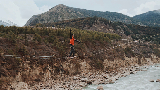 被誉为“中国扁带第一人”的张亮与张也、赖张、卢锋华、罗梦禅等人跨越雅鲁藏布大峡谷的高空扁带宽度只有2.5厘米,长度190米,距离江面的高度达到58米。这样一条近200米长的扁带在高空中晃动幅度很大,很难保持平衡,加上峡谷的风和多变的天气,跨越行走的难度非常大。