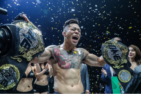 毫无疑问,阮马丁是个传奇。这位在澳大利亚长大的越南裔青年原本想成为一名橄榄球冠军,梦想失败后,他继承了父亲的工作,成为一名全职机械师。上天给了他一副强有力的身体,命运为他打开一扇新窗。为了减肥,他开始练习格斗,那时阮马丁已经21岁了,从没想过自己会成为格斗冠军。可2年之后,天赋过人的阮马丁就在职业擂台连闯三关,成为澳大利亚BRACE羽量级冠军。“亚洲旋风”阮马丁的重拳如同狙击枪般精准,常在对攻中上演“一击毙命”的精彩好戏。靠着一连串的KO,阮马丁在ONE 冠军赛掀起一阵“阮式”旋风,爱德华·凯利、李凯文、李胜龙、横田一则,连续四名对手都在一回合内被他终结。阮马丁复仇击败马拉特·加富罗夫成为羽量级统治者,随后又战胜ONE轻量级世界冠军埃杜阿德·弗拉杨,获得了第二条世界冠军金腰带。如果不是雏量级的统治者“闪电”比比亚诺用顽强抵抗换来一场分歧判定胜利,阮马丁很可能将创造历史,拿到三个级别冠军腰带。阮马丁11场胜利中有10场提前终结对手,奋力拼搏的姿态让他成为一个优秀的榜样。“作为三个孩子的父亲,我希望让他们看到,为梦想努力是一件很酷的事情。格斗需要自律、牺牲以及强大的价值观。我想激励越南和澳大利亚的年轻人,用奋斗实现梦想。”