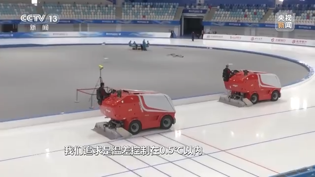 国家速滑馆制冰系统设计总负责人 马进:所有的技术工作都在围绕着均衡的冰面在做,传统的制冰技术冰面要求温差做到1.5度就可以了,我们追求温差控制在0.5度以内,我们要给运动员提供一个最快的冰。
