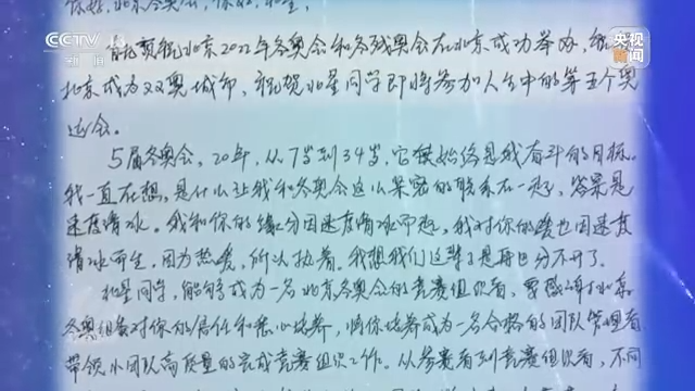 出于对速度滑冰的热爱,对北京2022年冬奥会的向往,王北星特意写了一封信,写给不久之后的自己,在信中,她畅想当时的景象,抒发内心的感动。