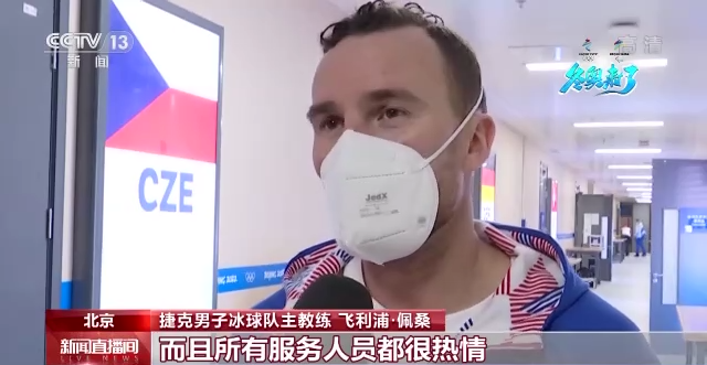 捷克男子冰球队主教练 飞利浦·佩桑:我看到每项设施都准备好了,这简直太棒了。尤其是冰场,这是达到世界高水平的冰场。还有更衣室,以及热身区,一切都运行得非常顺利,而且所有服务人员都很热情。另外我觉得,尽管受到疫情影响,但在这个时候,北京冬奥会能够按时举行,并且全球的人们都团聚起来,共同参与这样一场盛会,我觉得这其实就是在向全球抗击疫情注入信心。