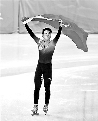 任子威在赛场上庆祝。摄影/本报记者 胡金喜