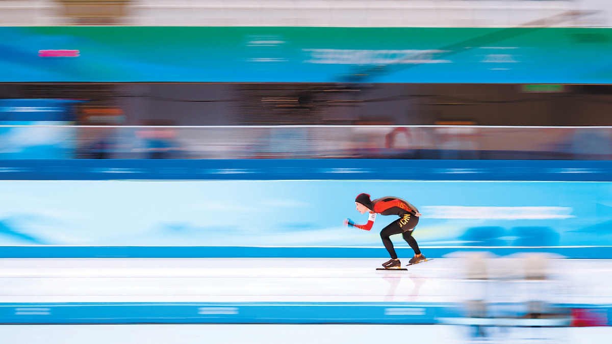 2月10日,在速度滑冰女子5000米比赛中,中国选手韩梅参赛。 本报记者 邓伟摄