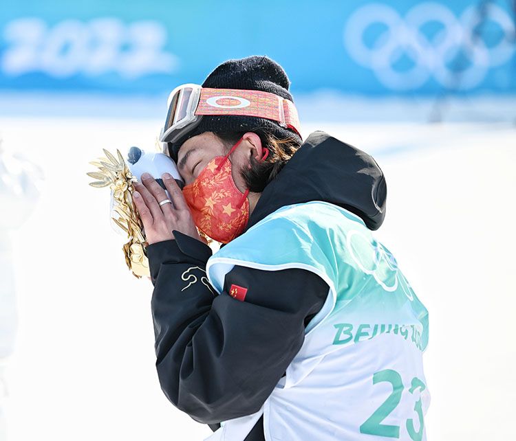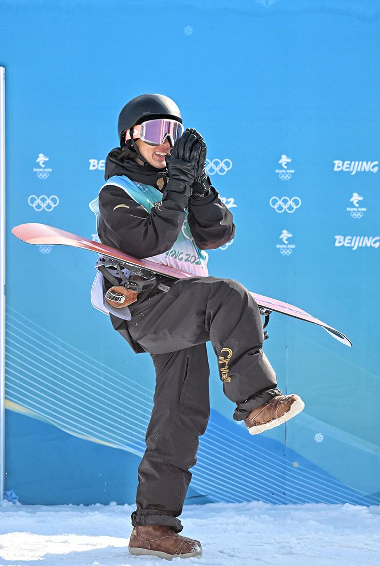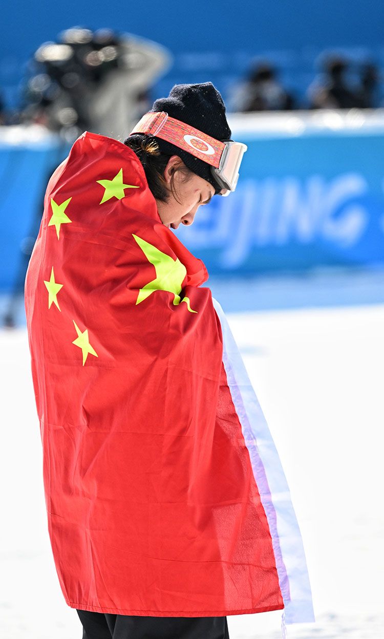 2月15日,北京冬奥会举行单板滑雪大跳台决赛。即将年满18周岁的苏翊鸣在单板滑雪男子大跳台决赛中,以182.5分的成绩夺得金牌。为中国冬奥代表队拿到第6枚金牌,并成为我国历史上最年轻的冬奥会冠军。图为:苏翊鸣夺冠后,难掩心中的激动。