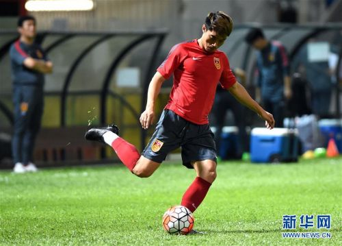 11月16日,中国队球员郑智在训练中传球。当日,中国队在香港旺角大球场进行训练,备战将于11月17日在香港举行的2018俄罗斯世界杯预选赛亚洲区C组对阵中国香港队的比赛。新华社记者卢炳辉摄