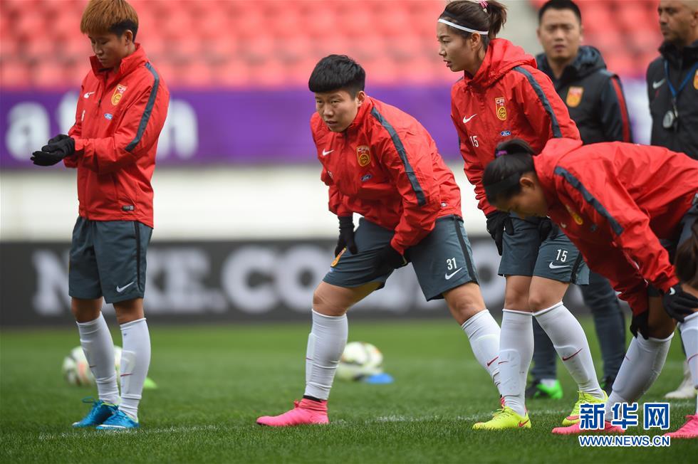 12月2日,女足队员马晓旭(左二)在训练中。当日,中国国家女子足球队在贵阳奥体中心进行赛前适应场地训练。中国女足将于12月3日在贵阳与意大利女足进行一场国际友谊赛。新华社记者刘续摄