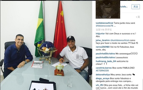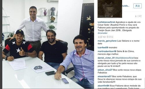 北京时间12月24日,35岁的巴西前国脚路易斯-法比亚诺今天在个人社交媒体主页上晒出与天津权健俱乐部签约的照片,并且确认了即将在新赛季加盟权健俱乐部。