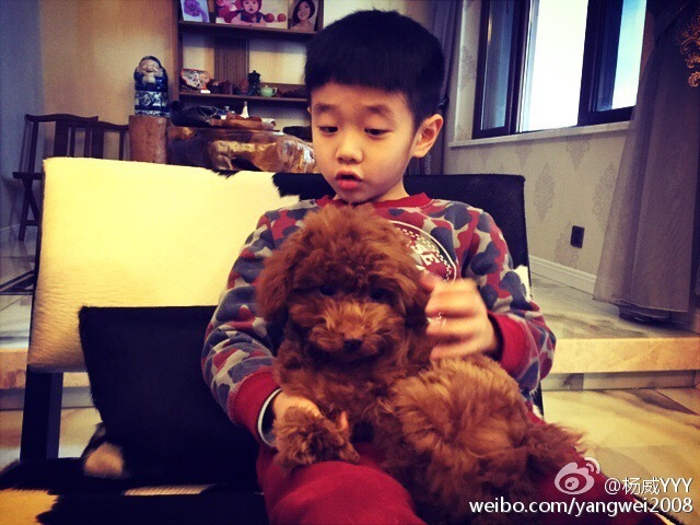 杨威爱子杨阳洋与萌宠欢乐玩耍,他们比比到底谁更萌?杨威在微博中表示:“这个玩伴可好!陪伴一起长大!”