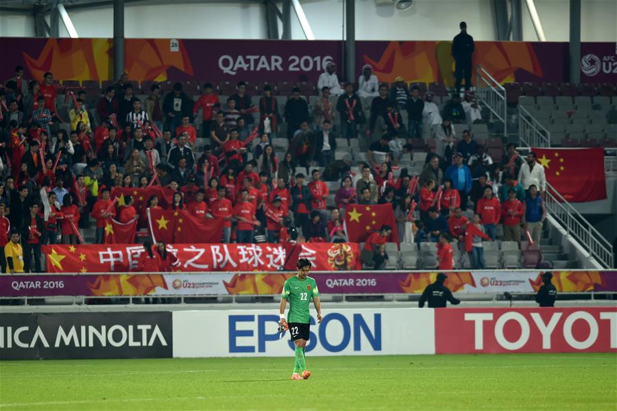 1月15日,中国国奥队守门员张一诺在比赛后离场。当日,在卡塔尔多哈举行的U23亚洲足球锦标赛暨里约奥运会亚洲区预选赛中,中国国奥队以1比3不敌叙利亚国奥队。 新华社记者贺灿铃摄