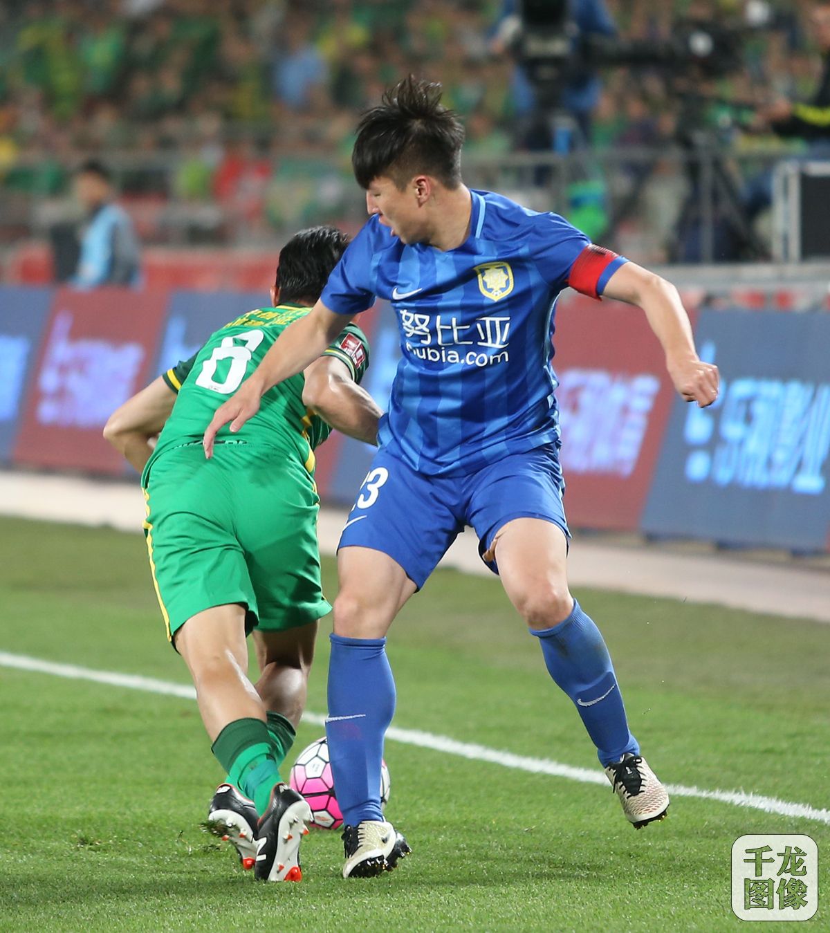 主场1:2不敌江苏苏宁。图为双方比赛精彩瞬间。千龙网记者 戚连民摄