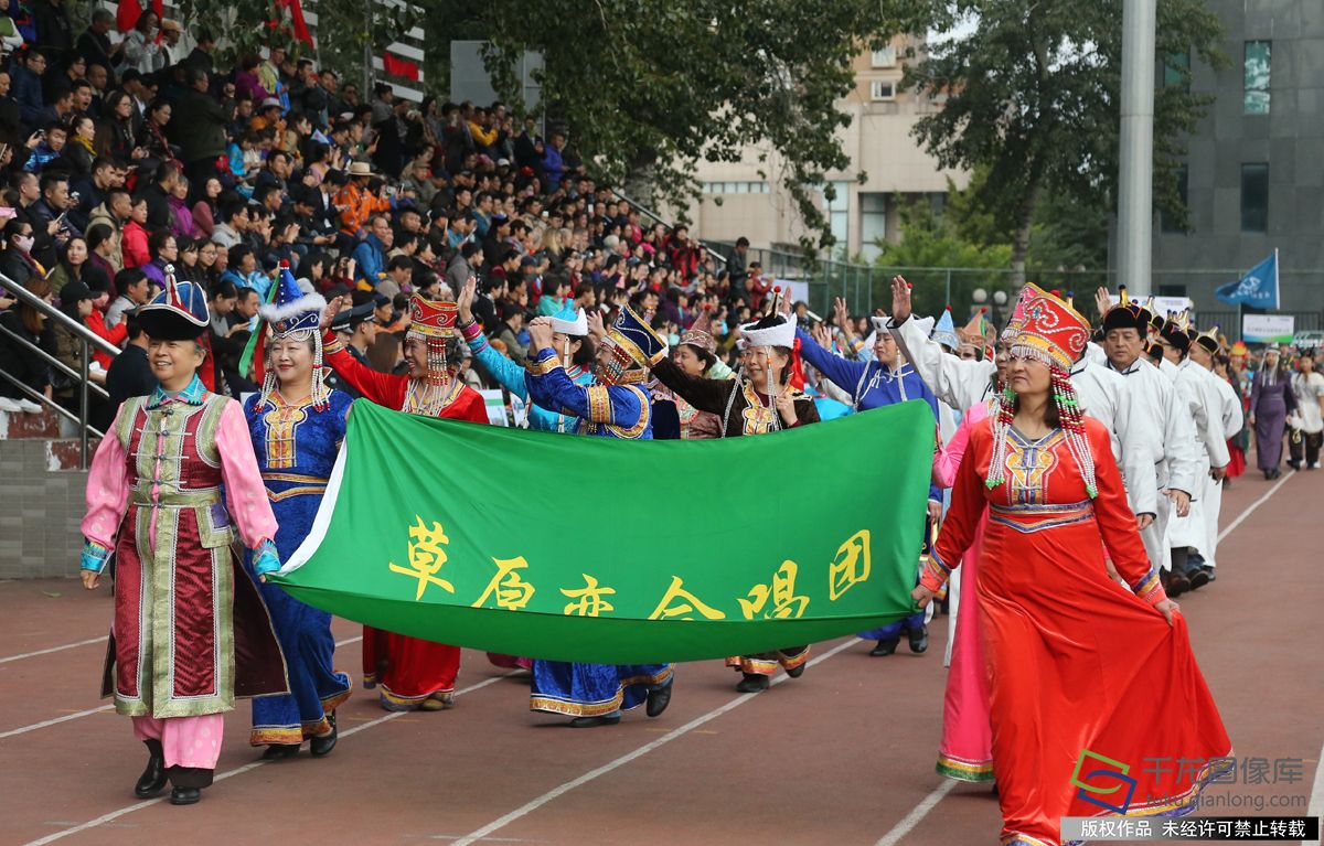 10月22日,第36届北京那达慕大会在中央民族大学举行。图为草原恋合唱团方队参加大会开幕式。千龙网记者 戚连民摄
