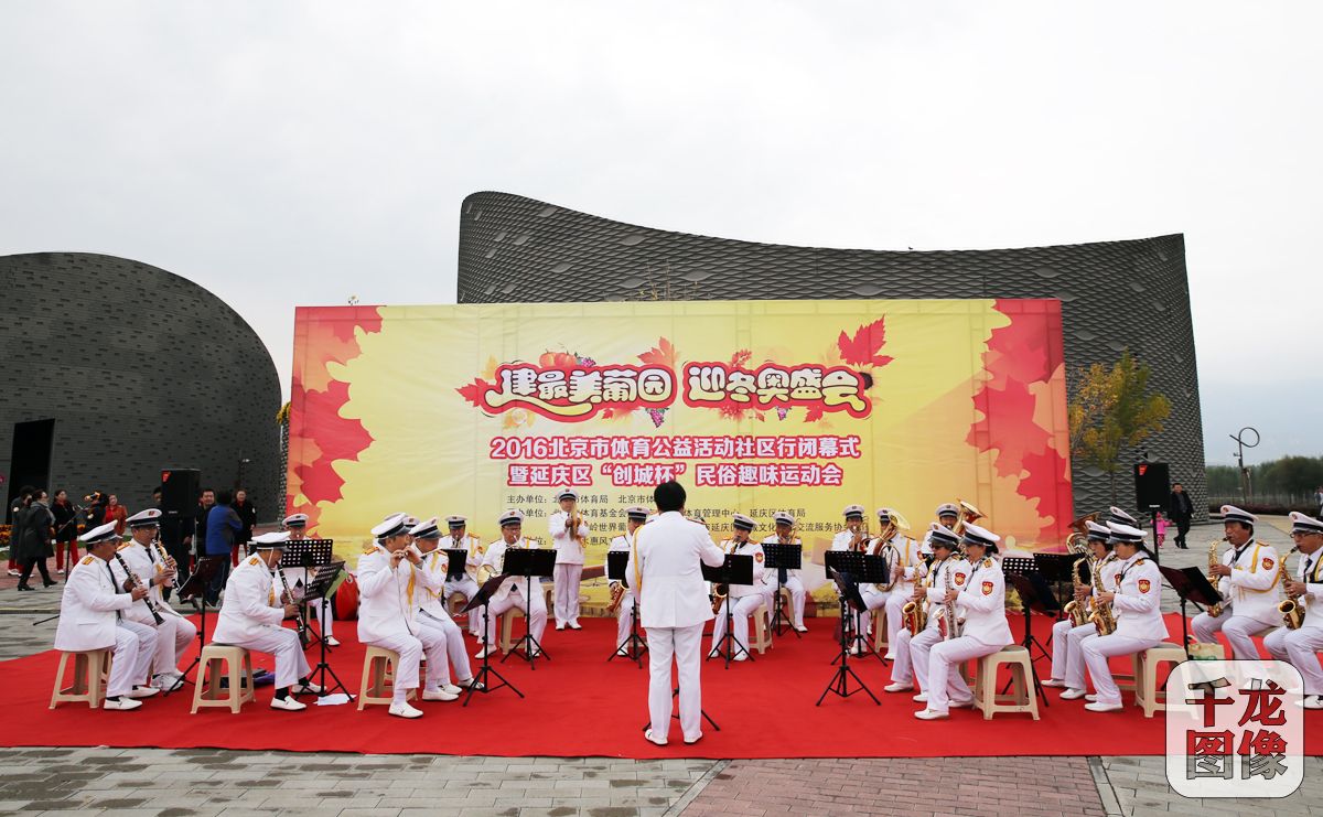 10月22日,“2016北京市体育公益活动社区行闭幕式暨延庆区‘创城杯’趣味运动会”在世界葡萄博览园内举行。图为草桥社区的北京金牌乐团演奏了悠扬的乐曲,为活动现场增添了一道亮丽的风景线。千龙网发 组委会供图