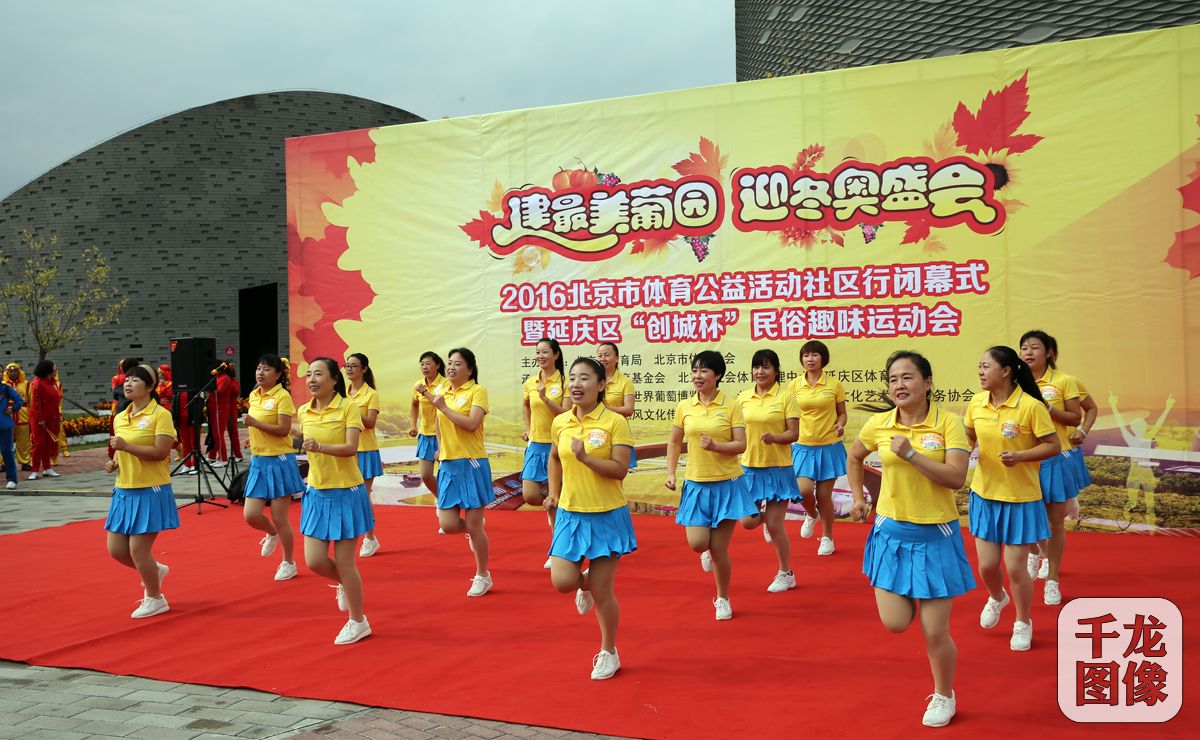 10月22日,“2016北京市体育公益活动社区行闭幕式暨延庆区‘创城杯’趣味运动会”在世界葡萄博览园内举行。图为选手表演活力十足。千龙网发 组委会供图
