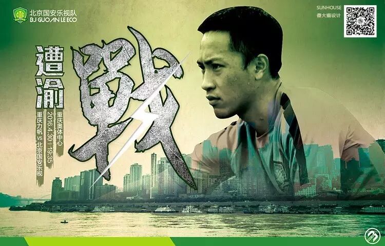 还未找回状态的国安客场挑战四连平的重庆,这绝对是场遭遇战,当然也是遭“渝”战。海报设计突出“战”字,想表明——此刻唯有坚定战斗下去才可扭转目前颓势,为五月份的魔鬼赛程打下基础。
