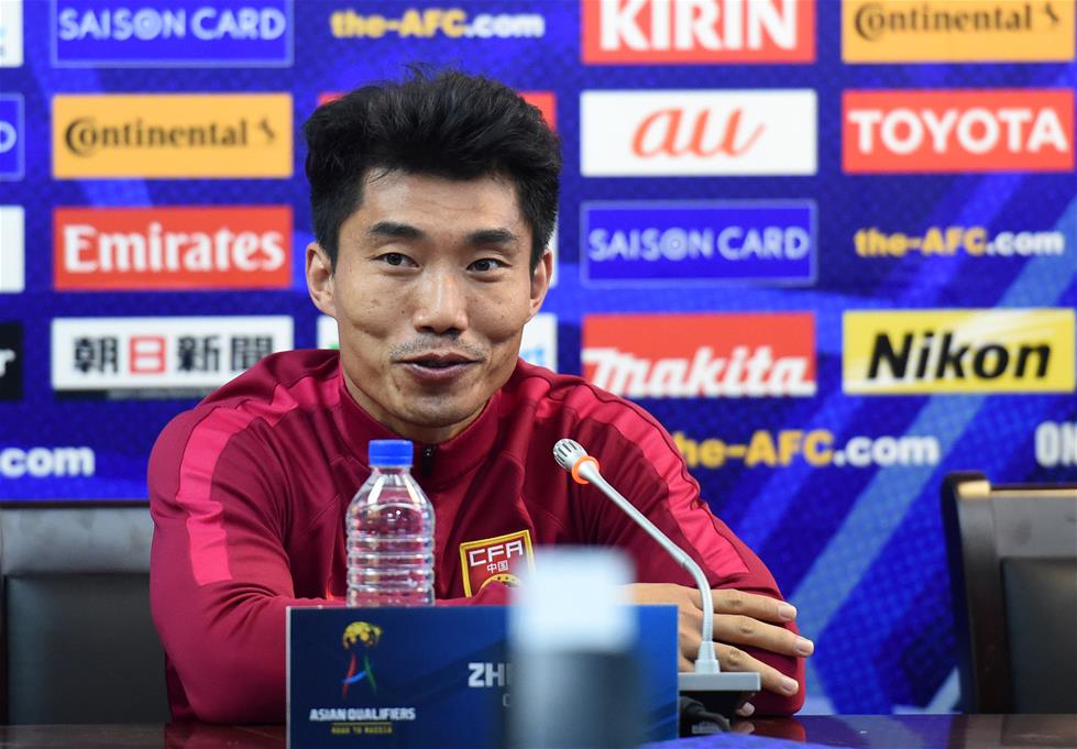 11月14日,国家队队长郑智在新闻发布会中。当日,中国男子足球队在昆明拓东体育场举行赛前新闻发布会。国足将在11月15日举行的2018年俄罗斯世界杯亚洲区预选赛12强赛中迎战卡塔尔队。新华社记者蔺以光摄